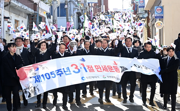 ±â³ä½Ä ÈÄ¿¡´Â ⿵ÃʵîÇб³¿¡¼ µ¿ÀÎõ¿ª ºÏ±¤Àå±îÁö ±â³ä½Ä Âü°¡ÀÚ Àü¿øÀÌ Å±ر⸦ µé°í ¡®´ëÇÑ µ¶¸³ ¸¸¼¼¡¯¸¦ ¿ÜÄ¡¸é¼ ¸¸¼¼¿îµ¿ ½Ã°¡ÇàÁøÀ» ÆîÃÆ´Ù. ÀÎõÁö¿ª 3¡¤1¸¸¼¼ ¿îµ¿ ÁÖ¿ä Àå¼ÒÀÎ ¸¸±¹°ø¿ø, Ȳ¾îÀåÅÍ, °ÈÀåÅÍ ±ê¹ßÀ» µé°í Áֹε鵵 ÇÔ²² ´Þ·Á ³ª¿Í µ¿ÂüÇÏ´Â µî ½ÇÁ¦ ¸¸¼¼¿îµ¿À» ÀçÇöÇÏ¸é¼ ½Ã¹Îµé°ú 3¡¤1¸¸¼¼ ¿îµ¿ÀÇ Àǹ̸¦ ÇÔ²² ³ª´³´Ù.