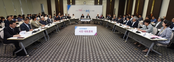 ½Ã´Â ÀÌ·¯ÇÑ °æ±â µÐÈ¿¡ µû¸¥ °æÁ¦ À§±â ¼Ó¿¡¼µµ ¡®½Ã¹ÎÀÌ ÇູÇÑ ¼¼°è ÃÊÀÏ·ù µµ½Ã ÀÎõ¡¯À» ½ÇÇöÇϰí, °æÁ¦ ±Ô¸ð(¸í¸ñ Áö¿ª³»ÃÑ»ý»ê(GRDP)) 100Á¶ ½Ã´ë·Î ³ª¾Æ°¡±â À§ÇØ ÀÎõÀÌ ´ç¸éÇÑ °æÁ¦¹®Á¦¸¦ ÀνÄÇϰí Á¤ºÎ³ª ½Ã Á¤Ã¥ÀÇ ºÎÁ·ÇÑ ºÎºÐµé°ú °³¼±¹æ¾È µî¿¡ ´ëÇØ °¡°¨ ¾øÀÌ ³íÀÇÇØº¸°íÀÚ À̹ø Åä·Ðȸ¸¦ °³ÃÖÇÏ°Ô µÆ´Ù.