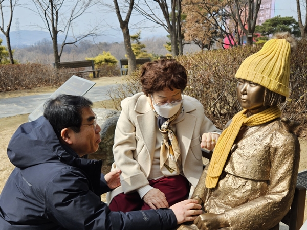 ¾ç ÀÇ¿øÀº ±¤¸í½ÃÀå ½ÃÀýÀÎ 2015³â ±¤º¹ 70ÁÖ³âÀ» ±â³äÇÏ¿© ±¤¸íµ¿±¼ ÀÔ±¸¿¡ ÆòÈ­ÀÇ ¼Ò³à»óÀ» ½Ã¹Î¼º±ÝÀ¸·Î °Ç¸³Çϸ鼭 ÀÌ¿ë¼ö ÇÒ¸Ó´Ï¿Í Àο¬À» ¸Î¾î¿Ô´Ù. Æò¼Ò ÀÌ ÇҸӴϸ¦ ¾î¸Ó´Ï·Î ¸ð¼Å¿Â ¾ç ÀÇ¿øÀº ¡°»ýÀü¿¡ ÀϺ»ÀÇ Áø½É¾î¸° »çÁË¿Í ¹ýÀû ¹è»ó µî ÇÑÀ» Ç®¾î´Þ¶ó´Â ¸»¾¸ÀÌ ´Ã °¡½¿¿¡ ¿Í ´ê¾Ò´Ù¡±¸ç ¡°¿À´Ãµµ ÀÌ ÇҸӴϲ²¼­ ÆòÈ­ÀÇ ¼Ò³à»óÀ» ¾î·ç¸¸Áö¸é¼­ ÇÑÀ» Ç®¾îÁÖ±â À§ÇØ È¥½ÅÀ» ´ÙÇÏ°Ú´Ù°í ´ÙÁüÇÏ¿© °¡½¿ÀÌ ¾ÆÆÍ´Ù¡±¶ó°í ¸»Çß´Ù.