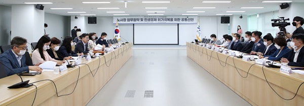 À̹ø °øµ¿¼±¾ð¿¡ µû¶ó °æ±âµµ¿Í ³ëµ¿°è, °æ¿µ°è´Â ¹Î»ý°æÁ¦ À§±â ±Øº¹À» À§ÇÑ ½Çõ°úÁ¦¸¦ ¹ß±¼Çϰí Àû±Ø ¼ÒÅ롤Çù·ÂÇØ ³ª°¡±â·Î Çß´Ù.