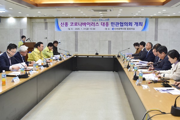 ÀÎõ½Ã(½ÃÀå ¹Ú³²Ãá)´Â ÃÖ±Ù Áß±¹ ¿ìÇѽÿ¡¼ ºÒ°ÅÁø ½ÅÁ¾ Äڷγª¹ÙÀÌ·¯½º°¡ ±¹³»¿Ü·Î ±Þ¼ÓÇÏ°Ô È®»êµÉ ¿ì·Á°¡ ÀÖ´Â °¡¿îµ¥, ´ëÀÀ¹æ¾ÈÀ» ³íÀÇÇϱâ À§ÇØ 1¿ù 31ÀÏ ¿ÀÈÄ3½Ã ÀÎõ½Ãû¿¡¼ ÀÇ·á±â°üÀå, ÀǾà´ÜüÀå µî 16¸íÀÌ Âü¿©ÇÏ´Â ¹Î°üÇùÀÇȸ¸¦ ½Ç½ÃÇÏ¿´´Ù°í ¹àÇû´Ù.