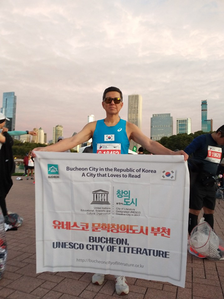 ½Åµ¿ÈÆ(61¡¤Àü »ç¹«°ü) ¾¾°¡ ÁÖÀΰøÀ¸·Î ±×´Â Áö³­´Þ 27ÀÏ °³ÃÖµÈ ¡®2019 Ãáõ ¸¶¶óÅæ¡¯¿¡¼­ Ç®ÄÚ½º(42.195§°) 100ȸ ¿ÏÁÖ Àü¡¤ÈÄ ºÎõ½Ã¸¦ È«º¸ÇÏ´Â ÀÏ¿¡ ¾ÕÀå¼¹´Ù. ƯÈ÷ ±×´Â 10¿ù 13ÀÏ(ÇöÁö½Ã°£) ¼¼°è ¸¶¶óÅæ 6´ë ¸ÞÀÌÀú´ëȸÀÇ ÇϳªÀÎ ¹Ì±¹ ¡®½ÃÄ«°í ¼¼°è¸¶¶óÅæ´ëȸ¡¯¿¡¼­ ºÎõ½Ã°¡ ÀÚºÎÇÏ´Â µ¿¾Æ½Ã¾Æ ÃÖÃÊ ÁöÁ¤ ¡®À¯³×½ºÄÚ ¹®ÇÐâÀǵµ½Ã ºÎõ¡¯À» ¾Ë¸®´Â Çö¼ö¸·À» ¾ÕÀå¼¼¿ì¸ç ¡®ºÎõ¡¯À» È«º¸ÇÏ´Â µ¥ Èû½è´Ù.