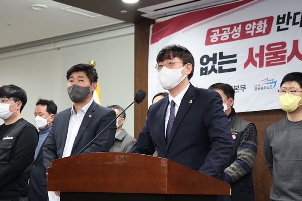 À̳¯ ¹ÎÁÖ³ëÃÑ °ø°ø¿î¼ö³ëÁ¶ »êÇÏ ¼­¿ïÁö¿ªº»ºÎ(º»ºÎÀå Á¤¿î±³)¿Í ¼­¿ï½ÃÃ⿬±â°üÁöºÎ(ÁöºÎÀå ³ªµµÃ¶), ¼­¿ï½ÃÃ⿬±â°ü ³ëÁ¶ÇùÀÇȸ, Çѱ¹³ëÃÑ ¼­¿ïƯº°½Ã°ø°øº¸°ÇÀÇ·áÀç´Ü³ëµ¿Á¶ÇÕ(À§¿øÀå ÇÑÁØÈñ)Àº ¼­¿ï½ÃÀÇ °æ¿µ È¿À²È­ ÃßÁø°úÁ¤¿¡ ´ëÇØ ¹Ý´ë ÀÔÀåÀ» ¹àÈ÷¸ç ÃßÁø ÁßÀÎ »êÇϱâ°ü ÅëÆóÇÕ¡¤±¸Á¶Á¶Á¤ ÀÛ¾÷À» Áß´ÜÇØ¾ß ÇÑ´Ù°í ÁÖÀåÇß´Ù.