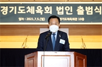 ÀåÇö±¹ ÀÇÀå, 5ÀÏ ¡®°æ±âµµÃ¼À°È¸ ¹ýÀÎ Ãâ¹ü½Ä¡¯ Âü¼® ÀåÇö±¹ °æ±âµµÀÇȸ ÀÇÀå(´õ¹ÎÁÖ, ¼ö¿ø7)ÀÌ 5ÀÏ °æ±âµµÃ¼À°È¸°ü ´ëȸÀǽǿ¡¼­ ½Ç½ÃµÈ ¡®°æ±âµµÃ¼À°È¸ ¹ýÀÎ ...