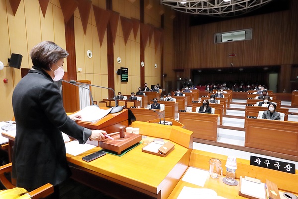 ¸ÕÀú, 28ÀÏ Á¦1Â÷ º»È¸ÀÇ¿¡¼­´Â ¹®ÇåÀÏ ±¸Ã»ÀåÀÇ ½ÃÁ¤¿¬¼³°ú 2022³âµµ Á¦3ȸ Ãß°¡°æÁ¤¿¹»ê¾È, 2023³âµµ ±¸·Î±¸ ¿¹»ê¾È ¹× ±â±Ý¿î¿ë °èȹ¾È¿¡ ´ëÇÑ Á¦¾È ¼³¸íÀ» µè´Â´Ù. À̾î 29ÀϺÎÅÍ ´ÙÀ½´Þ 1ÀϱîÁö ÁýÇàºÎ¿¡ ´ëÇÑ ±¸Á¤Áú¹®À» ½Ç½ÃÇÑ´Ù.