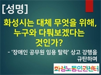 "È­¼º½ÃÀÇ 'Àå¾ÖÀÎ °ø¹«¿ø ÀÓ¿ë Å»¶ô' »ó°í °­Çà °­·Â ±Ôź!"- È­¼º³ëµ¿ÀαǼ¾ÅÍ ¼º¸í ³»°í "´ëü ¹«¾ùÀ» À§ÇØ, ´©±¸¿Í ´ÙÅýº¸°Ú´Ù´Â °ÍÀΰ¡?" È­¼º³ëµ¿ÀαÇ...