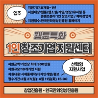 Çѱ¹¸¸È­¿µ»óÁøÈï¿ø, 2023³â ºñÁî´Ï½º¼¾ÅÍ ½Å±ÔÀÔÁÖÀÚ ¸ðÁý- ºñÁî´Ï½º¼¾ÅÍ ÃÑ 10°³½Ç ¿ª·®ÀÖ´Â ÀÛ°¡(ÆÀ) ¹× ¸¸È­ °ü·Ã ÄÜÅÙÃ÷ ±â¾÷ ¸ðÁý Áß- 2¿ù 6ÀÏ(¿ù...