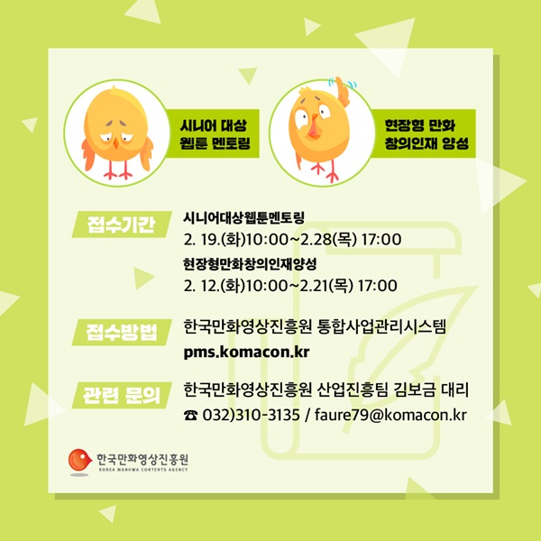 ¡®ÇöÀåÇü ¸¸È­ âÀÇÀÎÀç ¾ç¼º »ç¾÷¡¯ÀÇ Á¢¼ö ±â°£Àº 2¿ù 21ÀÏ ¿ÀÈÄ 5½Ã±îÁö¸ç Á¢¼ö ¹æ¹ýÀº ½Ã´Ï¾î ´ë»ó À¥Å÷ ¸àÅ丵°ú µ¿ÀÏÇÏ´Ù.