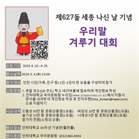 ÀÎÇÏ´ë ±¹¾î¹®È­¿ø, ¿ì¸®¸» °Ü·ç±â Âü°¡ÀÚ ¸ðÁý - 627µ¹ ¼¼Á¾ ³ª½Å ³¯ ±â³ä °³ÃÖ