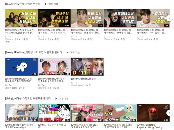 ÇöÀç ¡®031 TV¡¯¿¡´Â ÃÑ 25ÆíÀÇ ¿µ»óÀÌ ¿Ã¶ó°¡ ÀÖÀ¸¸ç, 1ÇбⰡ ¸¶°¨µÇ´Â ¿À´Â 6¿ù±îÁö ³ª¸ÓÁö ¿µ»óµµ ¼øÂ÷ÀûÀ¸·Î ¾÷·ÎµåÇØ ÃÑ 40ÆíÀÇ ¿µ»óÀ» ¸¸³ªº¼ ¼ö ÀÖÀ» ¿¹Á¤ÀÌ´Ù. ÀÌ ¿µ»óµéÀº ¸¶Áö¸· ¿öÅ©¼ó ½Ã»ó½Ä¿¡¼­ ¸®ºä ¼ö¿Í È£ÀÀµµ¿¡ µû¶ó ¿ì¼öÀÛÀ» ¼±Á¤¡¤½Ã»óÇÒ ¿¹Á¤ÀÌ´Ù. ½Ã»ó½ÄÀº À¯Æ©ºê ¶óÀ̺긦 ÅëÇØ¼­ »ýÁß°è µÈ´Ù.